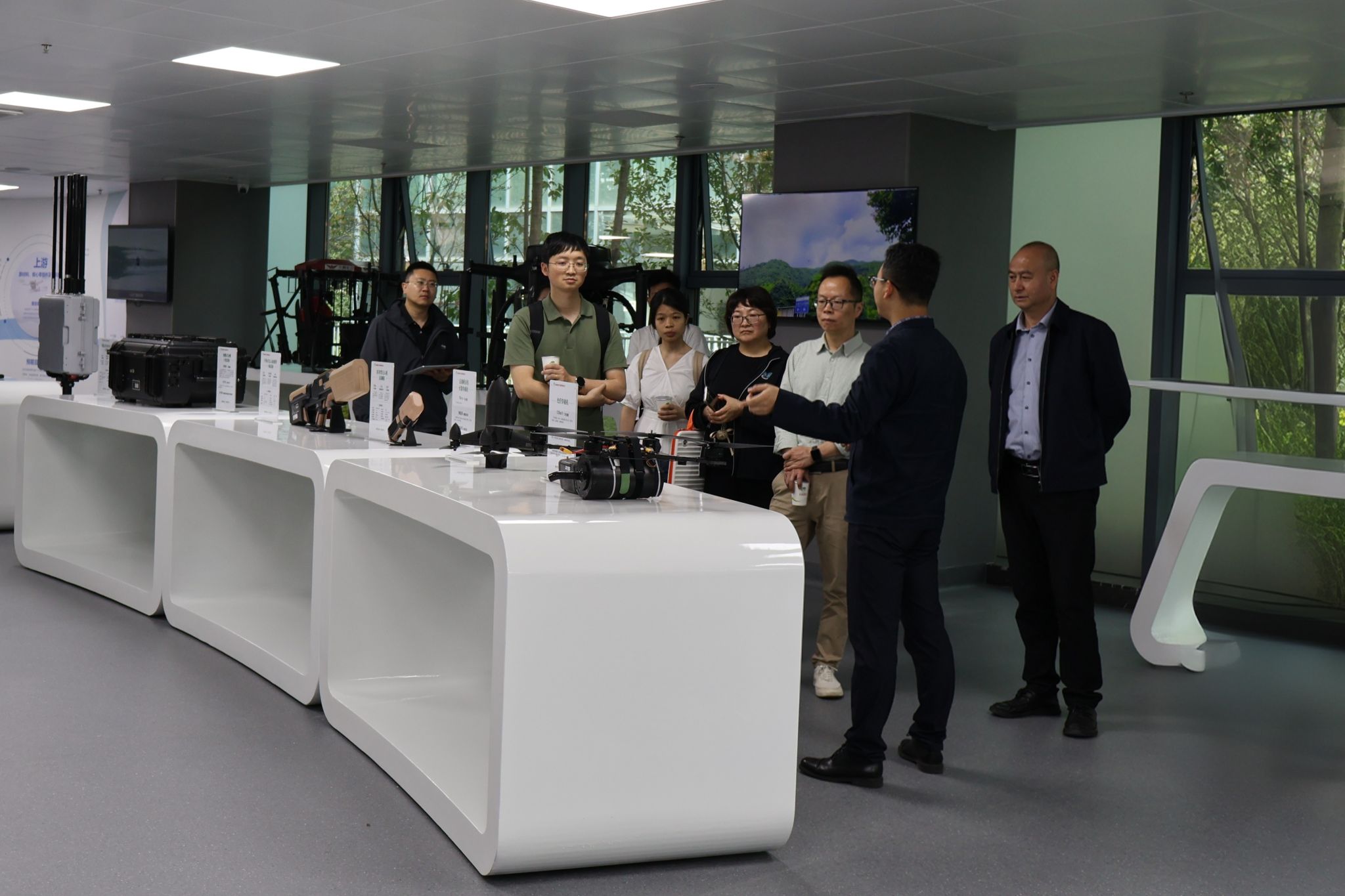 交流期间,在公司相关人员的陪同下,学院团队参观了公司的运行控制大厅及部分低空作业装备。该大厅作为云南省“一网统飞”智能中台,动态呈现了云南省低空飞行器的运行现状及多项任务场景。在参观过程中,公司不仅通过大屏演示了典型应用场景,还向学院团队实地展示了当前使用的多型工业级无人机及其配套装备。公司重点展示了低空技术在生鲜物流配送、森林防火巡检、高速公路设施巡查、市政综合管理等领域的示范应用,为低空场景下的无人机应用提供了丰富的思路。